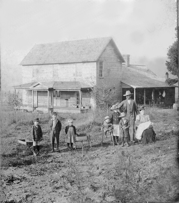 Family of George Shuford Ramseur and Anna Forney -1901The house was located at 1685 Bost Road, Morganton, NC. Left to right: George Lewis Ramseur (1895-1930), William Forney Ramseur (1892-1979), Katherine Elizabeth Ramseur (1898-1941), Daniel Elkana Ramseur (1899-1991), Mary Annie Ramseur (1893-1979), Clarence Macon Ramseur (1896-1988), George Shuford Ramseur (1863-1919), and Anna Forney Ramseur (1863-1950) holding Sallie Shuford Ramseur (1901-1985). |
